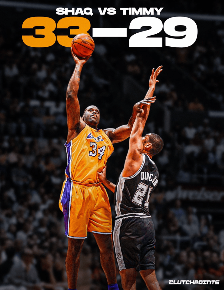 CP: 尽管邓肯是大基本功先生, 但奥尼尔与他交手33胜29负